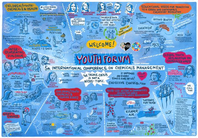 Miriam Barton, Chemicals and Waste Youth Platform, displays her graphic summary of the Youth Forum on Chemicals Governance 2023.